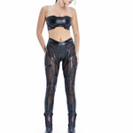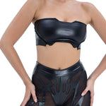 CEPH-422 Crop Top Bustier Noir en Faux Cuir