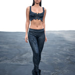 Crop top bustier ciré texturé pour femme fatale. Texture grunge en détresse. Corset sexy Char Haut. Armatures intégrées et rembourrage doux pour un coup de pouce supplémentaire. Doublure intérieure en satin pour un confort soyeux. Coupe régulière. Bretelles. Encolure dégagée. Se termine juste au dessus de la taille. Ouverture zippée devant. Empiècements et passepoils en cuir véritable côtelé.